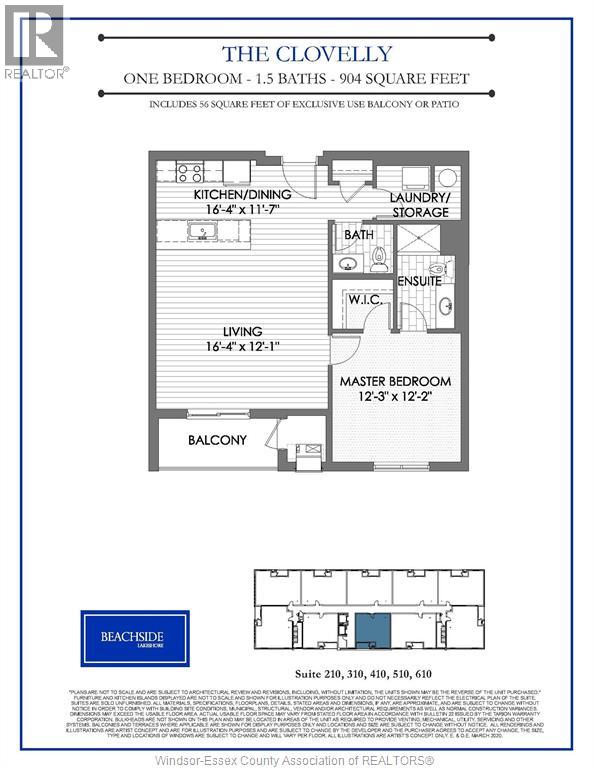Welcome to Beachside-Lakeshore, luxury condos for lease in Essex County's most walkable location. Modern 6 storey, 58 unit building offers stunning 1 & 2 bedroom suites & the opportunity for seniors to live in an active community featuring live-in manager, pickle ball courts, organized social & fitness activities, and pavilion. Suites feature 9ft ceilings, gorgeous kitchens with crown moulding, quartz counters, tile backsplash, stunning ensuite baths with Euro glass/tile showers, in suite laundry, impressive stainless steel appliance package, balcony and much more. Located in the perfect location where you can walk to shops, pharmacies, grocery stores, restaurants, LCBO, the beautiful waterfront at Lakewood Park, plus easy commuting with quick access to EC Row Expressway and the 401. Tenant is responsible for hydro and gas. Water and one surface parking spot included. Pet restriction of 1 pet under 25 lbs. Application and credit check required. **PHOTOS ARE FROM ANOTHER UNIT & MAY NOT BE EXACTLY AS SHOWN** (id:4555)